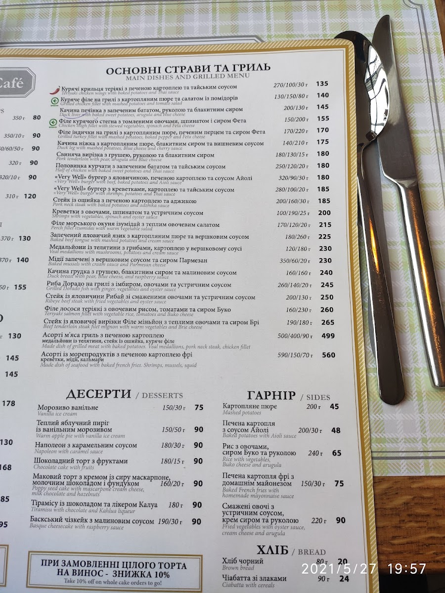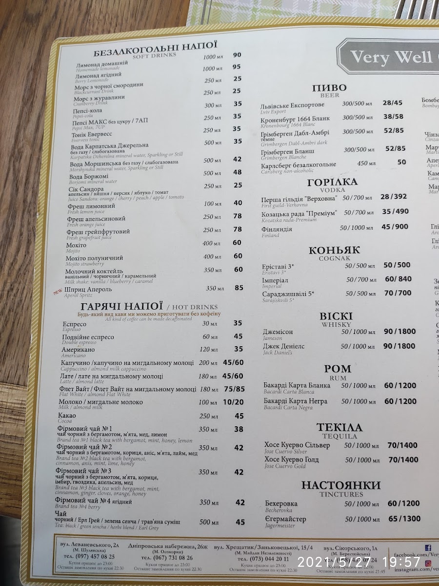 Welcome to Very Well Cafe, a delightful culinary gem located on Aviakonstructor Igor Sikorsky St in Kyiv. This cafe is celebrated for its diverse and appealing menu that caters to a range of palates. Guests rave about the quality of the business lunches, featuring fresh ingredients and innovative tea beverages. The standout dish, according to patrons, is the filet mignon in BBQ sauce, which promises a mouthwatering experience. While the rib eye may not always meet expectations, the overall value and cozy ambiance make dining here a pleasure.